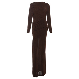 欧美风2025秋冬季新款女装时尚气质纯色褶皱圆领修身长袖连衣裙女
