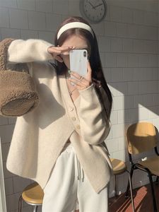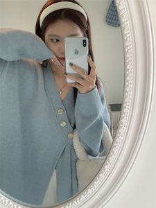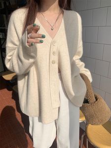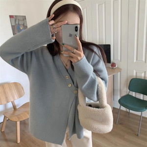 毛衣外套开衫女秋冬针织设计感小众宽松慵懒风斜扣v领内搭打底衫
