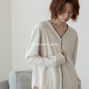 V领中米灰 (MOS原版,羊绒感薄绒磨毛睡衣家居服!100% 保真材质!)