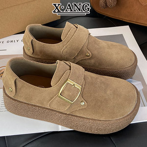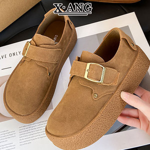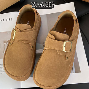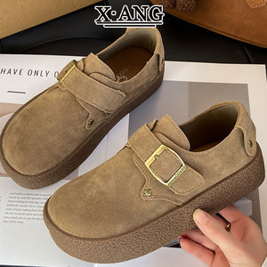牛皮版厚底全包勃肯鞋2025新款秋季女鞋乐福鞋软底不累脚休闲单鞋