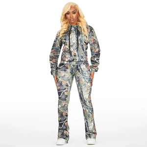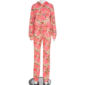 J25ST308欧美外贸运动女装街头潮人迷彩抽绳连帽上衣休闲长裤套装