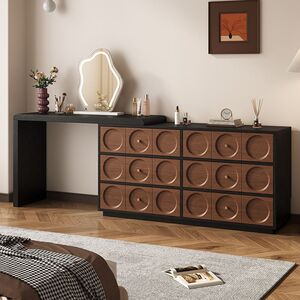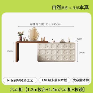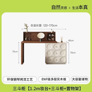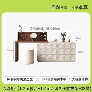 侘寂风中古梳妆台床尾斗柜一体书桌实木化妆台卧室转角法式奶油风