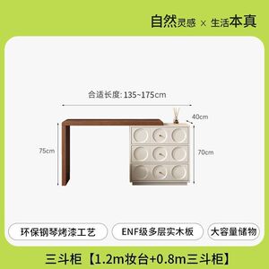1.2m拉台+0.8m三斗柜+妆镜+妆凳