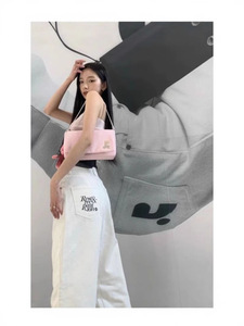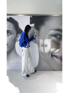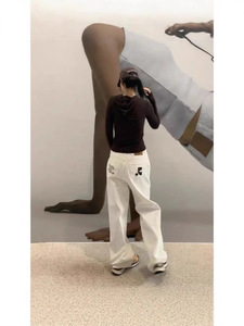 韩国小众潮牌2025秋冬新款RR撞色印花宽松休闲直筒牛仔裤长裤女