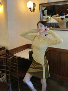 不规则飘带设计感长袖T恤PU皮包臀半身裙女2025秋季新款时尚套装