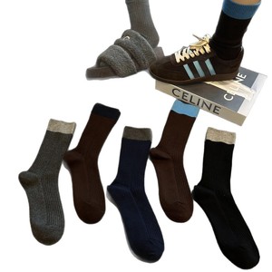 五双装秋冬复古女袜藏青色棕色双针袜中筒堆堆袜百搭不勒脚袜子女