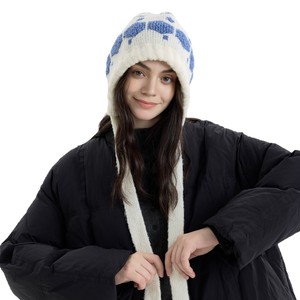 新款六边形针织绑带帽子女秋冬复古潮保暖毛线帽包头帽护耳雷锋帽