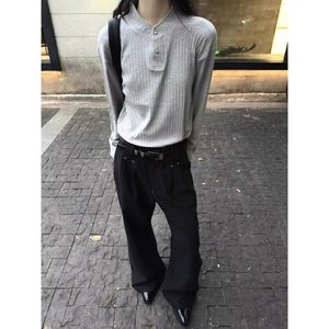 2025亨利领长袖秋季柔软舒适肌理感圆领上衣男纯色休闲长袖