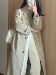 大码胖妹妹风衣外套女2025秋冬新款英伦风中长款系带收腰过膝大衣