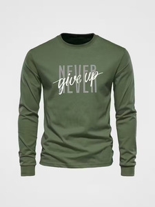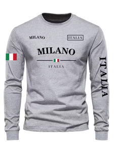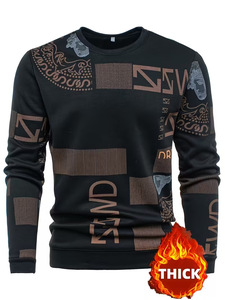 2025亚马逊跨境欧美新款长袖T恤圆领套头简约休闲3D数码印花男士