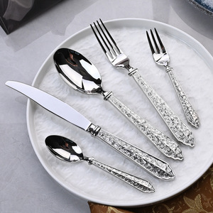 欧式创意304宫廷系列高档酒店精美复古浮雕牛排刀叉勺餐具套装