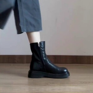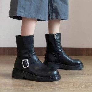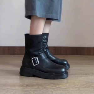 羊皮版~英伦风巨好看厚底皮带扣马丁靴女秋冬真皮百搭机车短筒靴