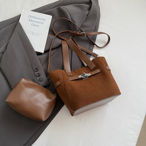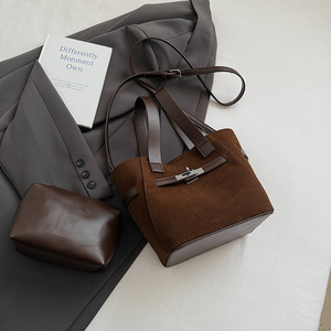秋季新款高颜值软皮手提水桶包2025复古通勤时髦简约女单肩斜跨包