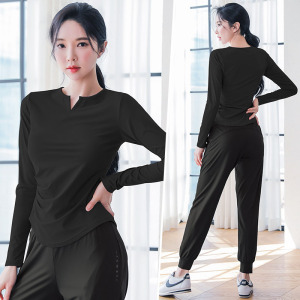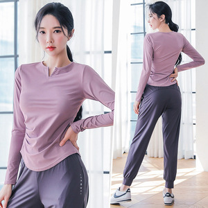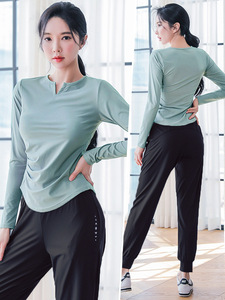 秋季瑜伽服女大码胖mm修身显瘦速干长袖T恤跑步健身时尚运动套装