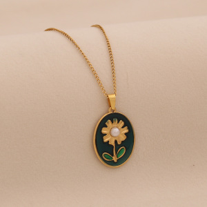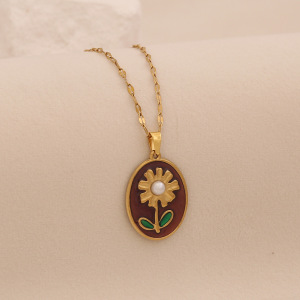 【冰萌】复古滴油向日葵花朵吊坠项链高级感不锈钢项饰饰品N1655