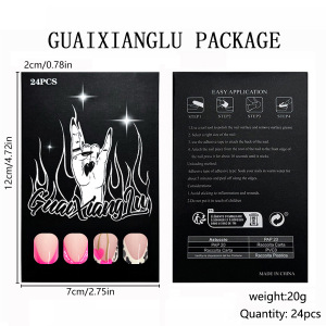 中款亮面水滴甲欧美玫红豹纹法式尖甜美樱桃3D立体滴胶穿戴甲24片