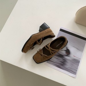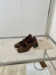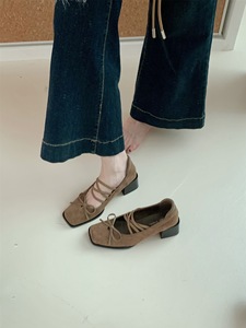 2025年秋方头复古蝴蝶结粗跟芭蕾舞鞋浅口交叉带中跟玛丽珍单鞋女