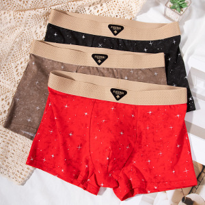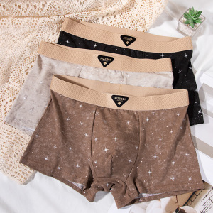 新款男士纯棉内裤清爽舒适吸汗透气星空印花中腰四角裤平角裤衩男