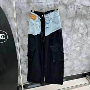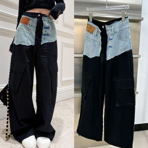 南油先锋设计毛边牛仔撞色拼接高腰工装裤女25秋季新款阔腿休闲裤