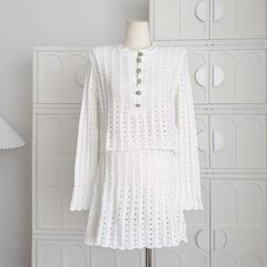 长袖夏季白色镂空时尚法式针织气质小香风套装
