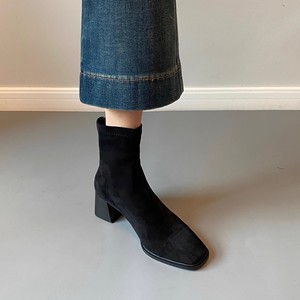 牛皮绒面瘦瘦靴棕色美拉德粗跟短靴新款法式方头弹力靴秋冬包腿靴