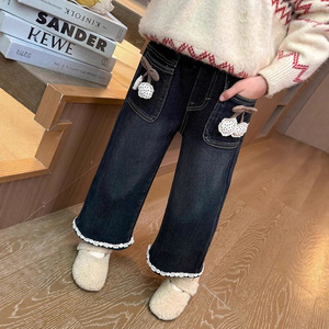 女童裤子秋冬款2025新款洋气女孩秋季休闲长裤儿童加绒加厚牛仔裤