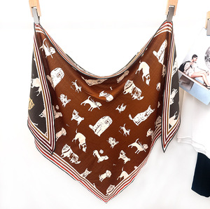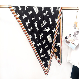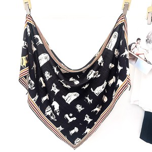 双面异色几何马车真丝羊毛三角巾秋冬保暖办公室围巾女披肩丝巾
