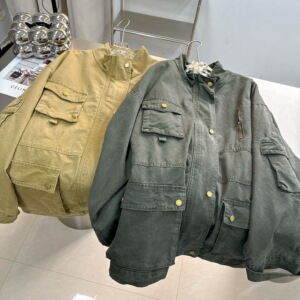 巴恩少女工装大口袋立领风衣外套女款2025年秋新款中长款气质宽松