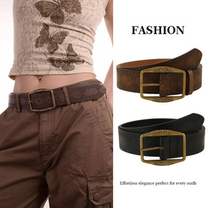 复古美式合金腰带牛仔棕色女高级搭配民族风百y2k辣妹嘻哈风皮带