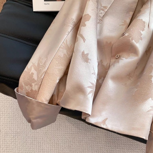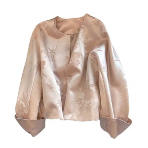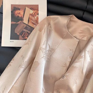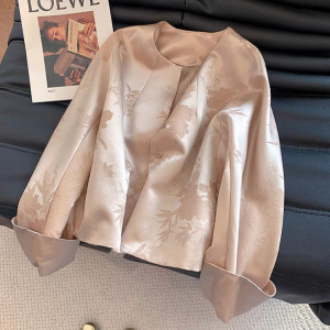 新中式暗纹真丝提花缎面外套女2025夏装新款高端国风洋气圆领上衣