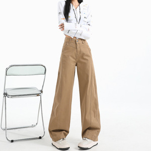 军绿色美式弯刀牛仔裤女2025秋季新款设计感宽松显瘦阔腿工装裤子
