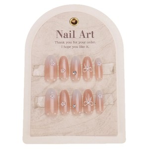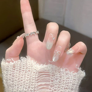 手工穿戴甲高级感裸粉渐变立体珍珠小花水钻蝴蝶结穿戴式指甲贴片