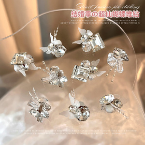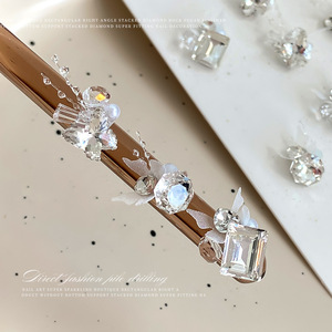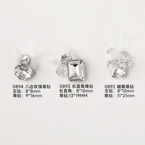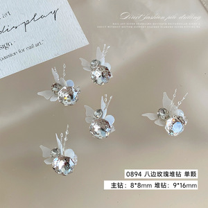 高品K9白色水晶美甲堆钻球新款甜美百搭八边玫瑰蝴蝶美甲饰品堆钻