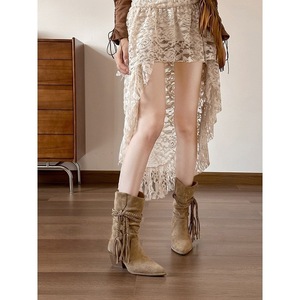 复古废土风粗跟流苏骑士靴女2025新款厚底不过膝长筒靴子
