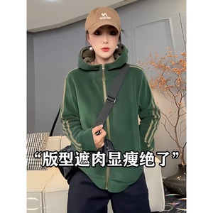 秋季时尚条纹拼接连帽外套女双面保暖奥粒绒加绒加厚休闲百搭上衣