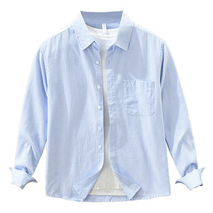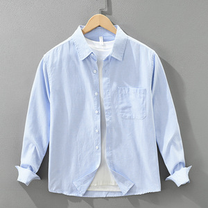 7788日系简约条纹长袖衬衫男士新款百搭文艺休闲宽松上衣一件代发
