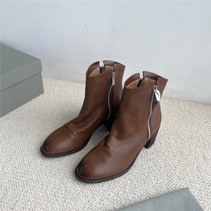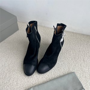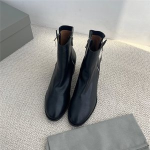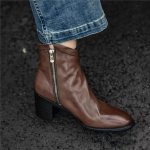 25复古褶皱真皮粗跟短靴英伦风侧拉链高跟时装靴时尚百搭马丁靴女