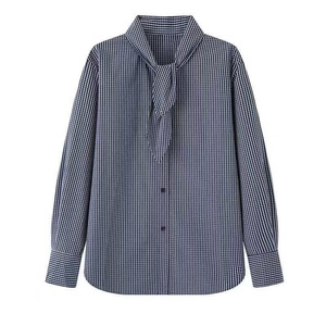 现货2025秋季新款宽松休闲韩版飘带格纹设计感长袖衬衫女AR504113