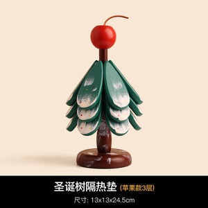 【苹果款】全实木-圣诞树隔热垫四层