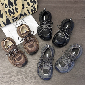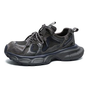 小怪兽厚底百搭潮流运动鞋女2025新款休闲增高系带拼色户外老爹鞋