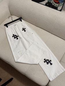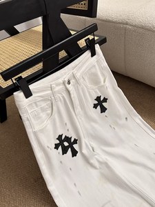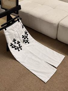 高版本~2025克罗家新款百搭休闲老花牛仔裤十字架贴皮刺绣直筒裤