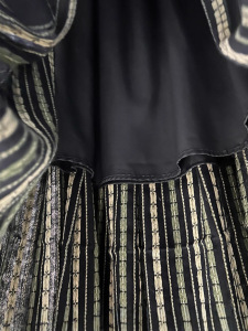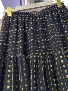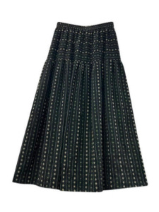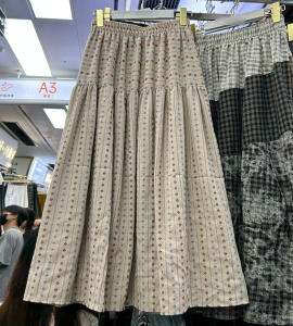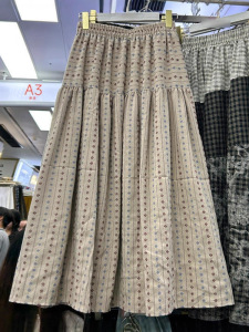 复古文艺绣花条纹拼接半身裙女025秋冬新款宽松显瘦百搭A字中长裙