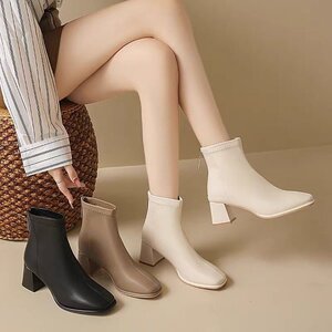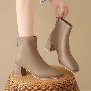 法式软皮小短靴踝靴2025新款秋冬粗跟马丁靴方头加绒短筒瘦瘦靴女