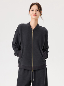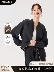 女士开衫上衣秋冬新款羊毛龟裂纹休闲宽松舒适极简圆领开衫上衣