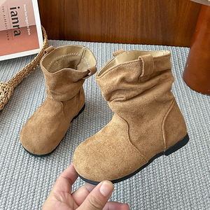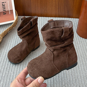 女童靴子2025秋季新款皮面儿童马丁靴宝宝软底公主短靴勃肯堆堆靴