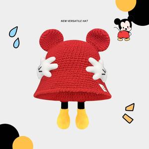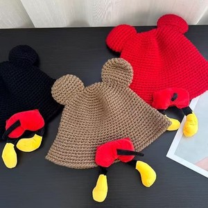 外贸跨境热卖批发热销现货日系搞怪可爱小怪兽毛绒针织帽子女秋冬季加厚骑行保暖百搭护耳帽