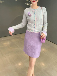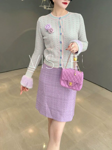 AYOE小贤 甜美少女时髦条纹显瘦小众时尚潮流小香针织开衫