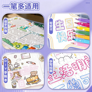 写贺卡笔学生用简洁多色彩记号笔绘画手抄报手账用双线轮廓笔