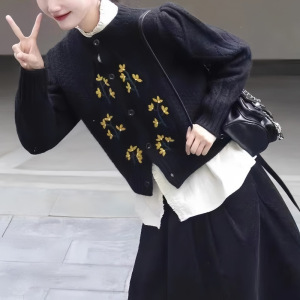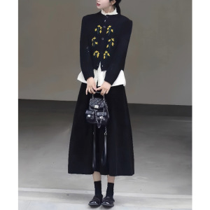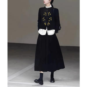 秋季盐系穿搭一整套装女时尚减龄新中式针织衫毛衣半身裙子两件套