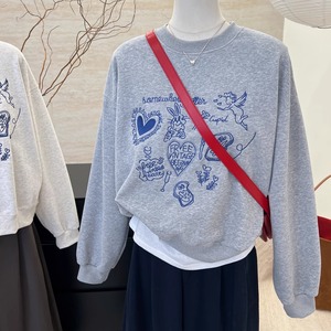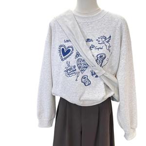重工涂鸦爱心刺绣早秋新款复古宽松休闲感圆领卫衣外套女上衣